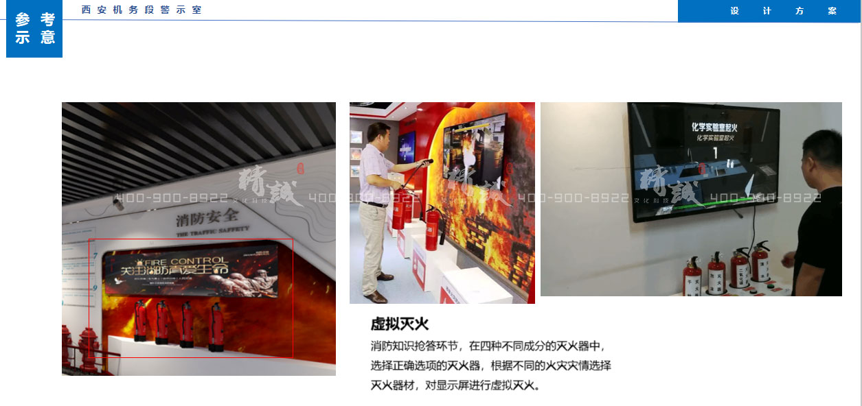 消防知識(shí)搶答環(huán)節(jié),在四種不同成分的滅火器中,選擇正確選項(xiàng)的滅火器,根據(jù)不同的火災(zāi)災(zāi)情選擇滅火器材,對(duì)顯示屏進(jìn)行虛擬滅火。