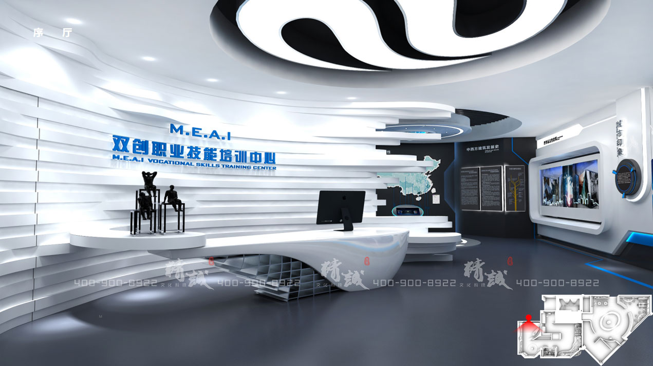 本項(xiàng)目為三好軟件針對雙創(chuàng)建立的職業(yè)技能培訓(xùn)中心,集科普、教育、培訓(xùn)于一體,運(yùn)用現(xiàn)代化展陳手段打造,風(fēng)格設(shè)計(jì)上凸顯科技理念,體驗(yàn)上依托多種類多媒體技術(shù)強(qiáng)調(diào)展陳的互動(dòng)性,使參觀者在寓教于樂的參觀體驗(yàn)過程中,了解施工工程的歷史發(fā)展,工法工藝,以及三好軟件強(qiáng)大的創(chuàng)新科研能力和近年來的優(yōu)秀成果和未來發(fā)展規(guī)劃。