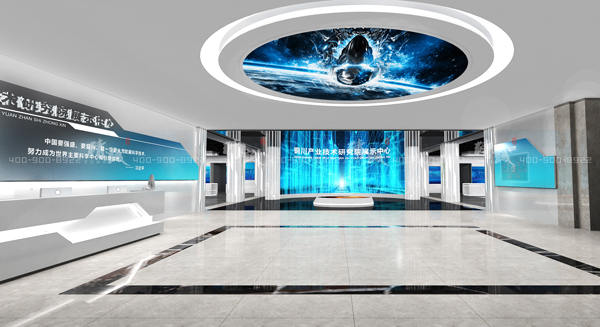 該展示中心亮點之一便是“聲、光、電”聯動的立體布局方式,感應式虛擬講解員、互動飛屏、透明液晶屏等交互科技的運用,將產品和虛擬展示結合起來,能更加真實、直觀地了解研究院的發(fā)展歷史和科技成果。