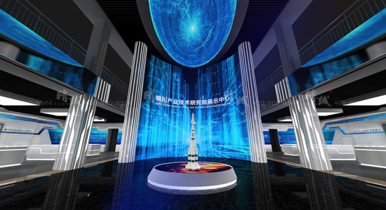 銅川市產業(yè)技術研究院展示中心位于銅川航天開發(fā)區(qū),是運用數字科技和多媒體交互技術打造的集園區(qū)形象展示,產業(yè)規(guī)劃展示,高新科技產品展示于一體的新型智慧展館。