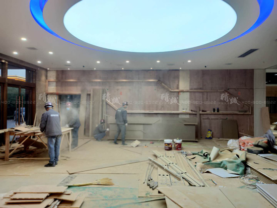 產品展示區(qū)墻體部分完成