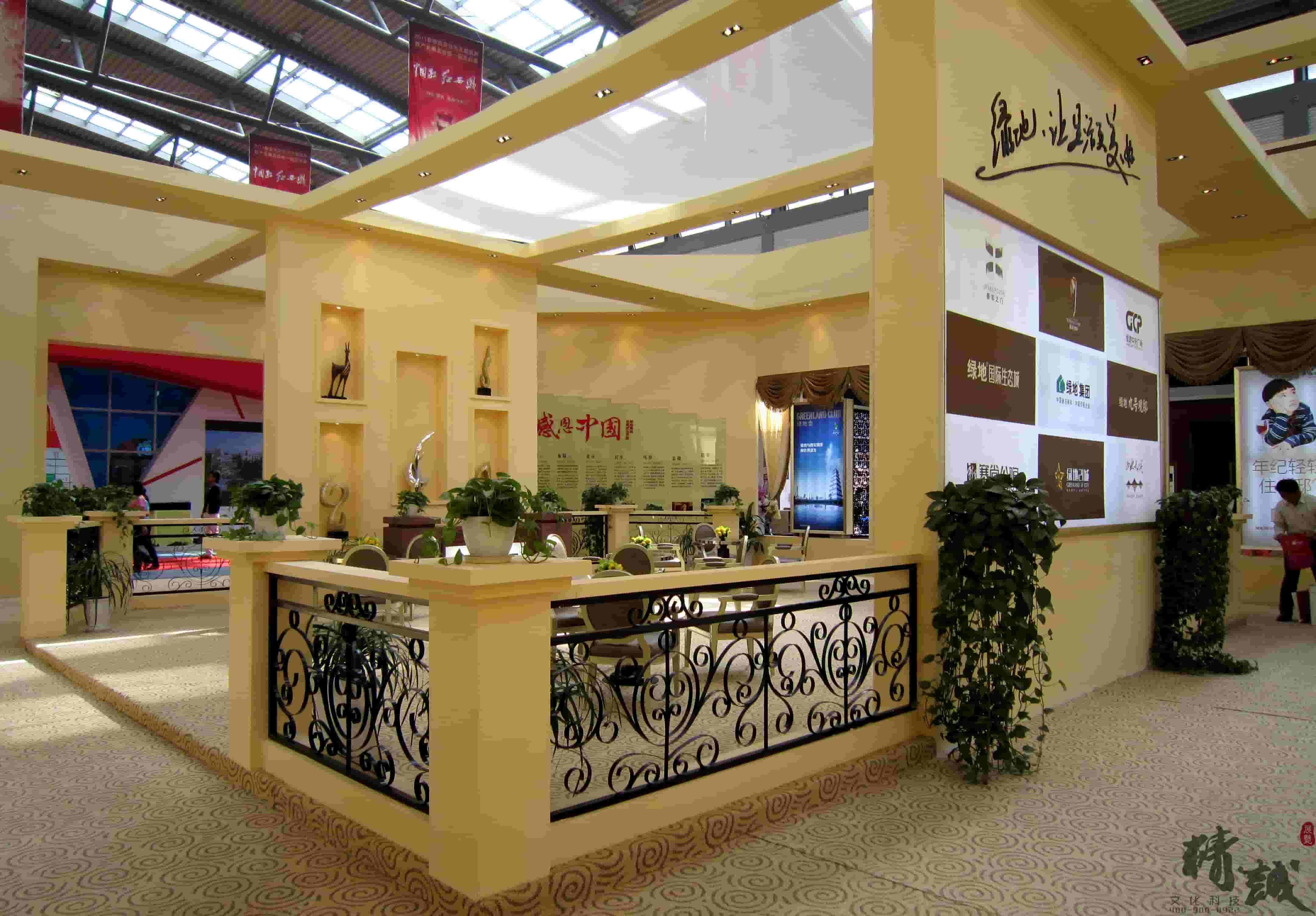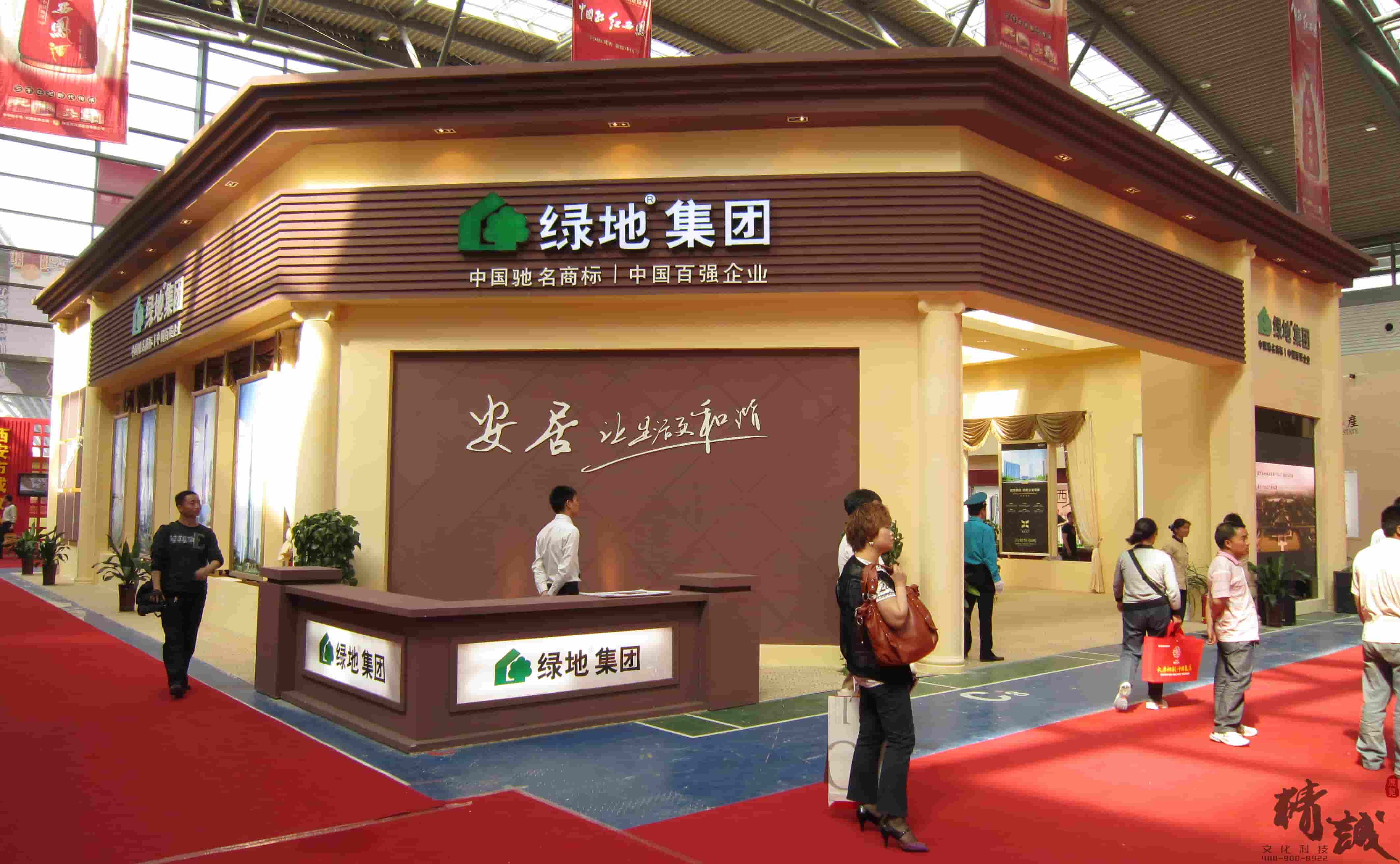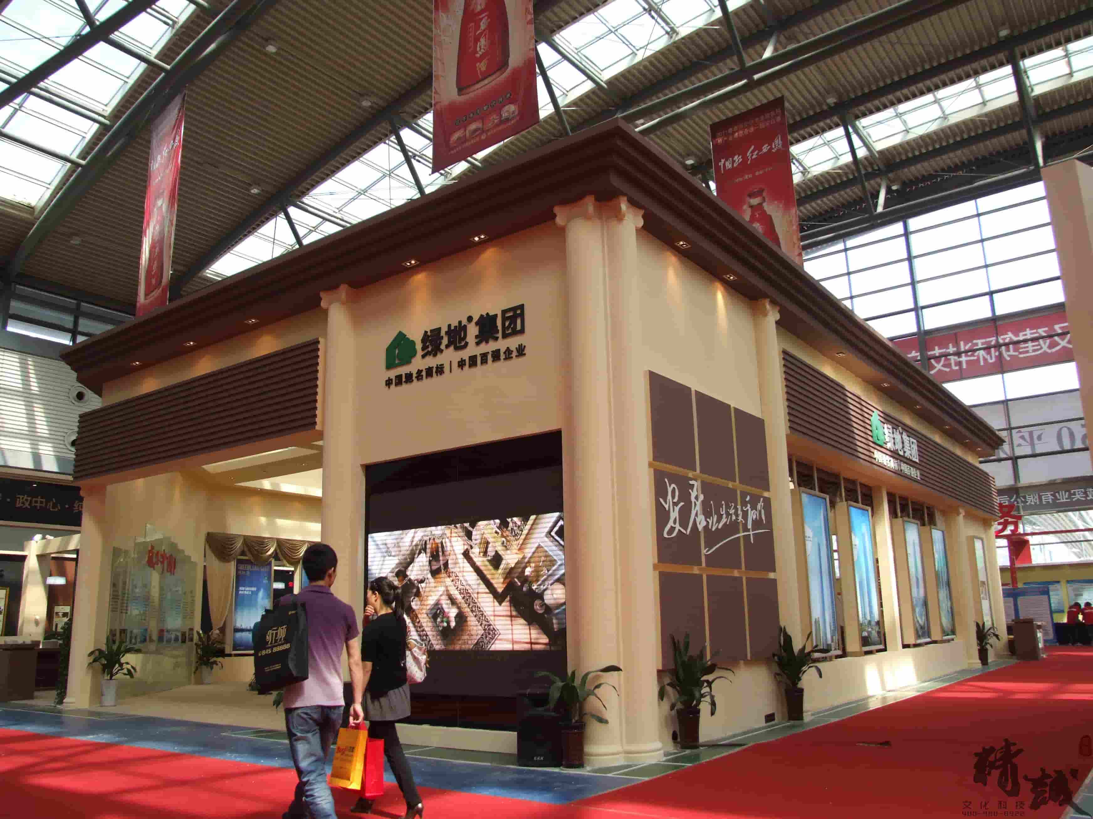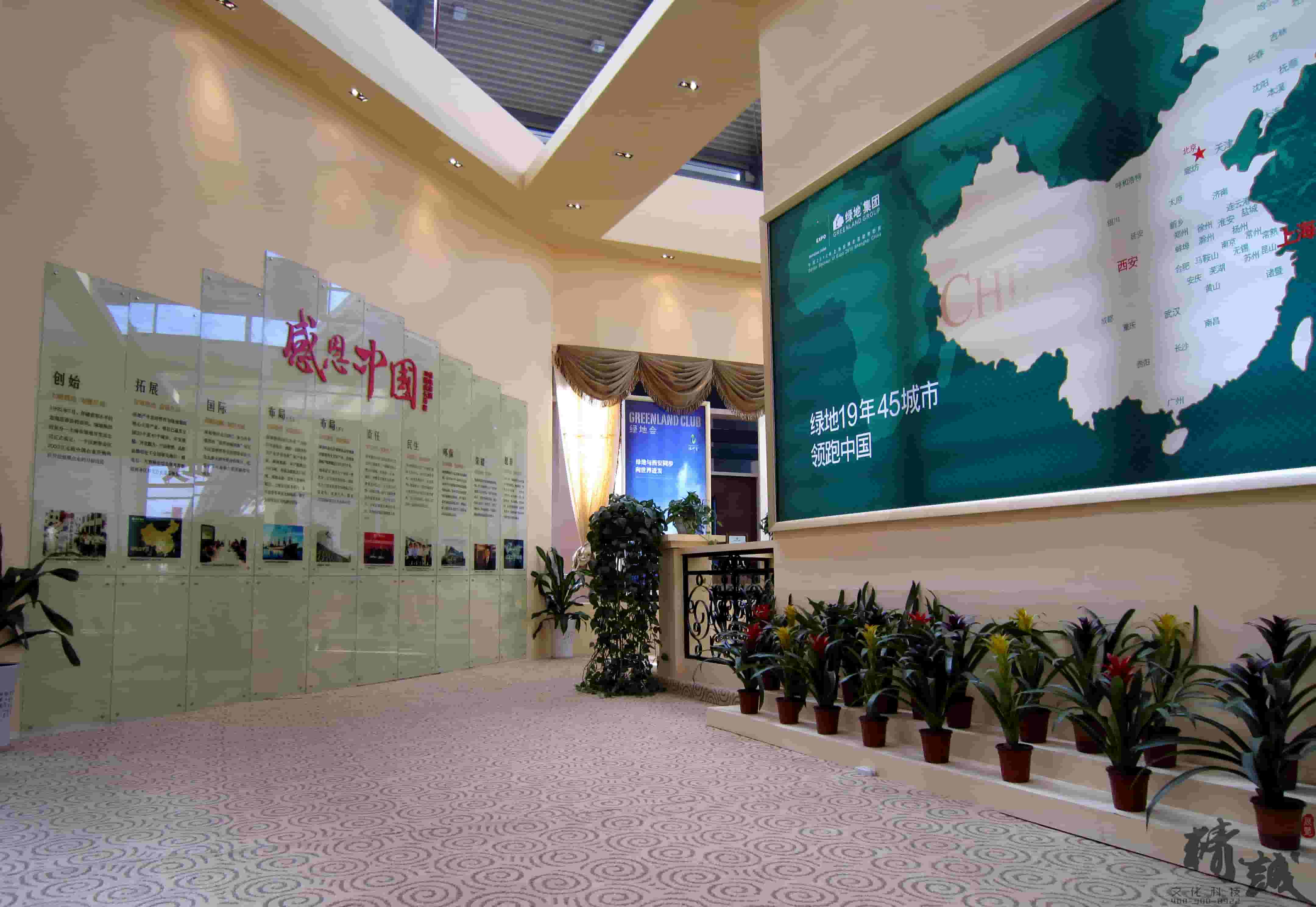 下圖是西安展覽公司為綠地集團設計的展覽展示效果,可供參考: