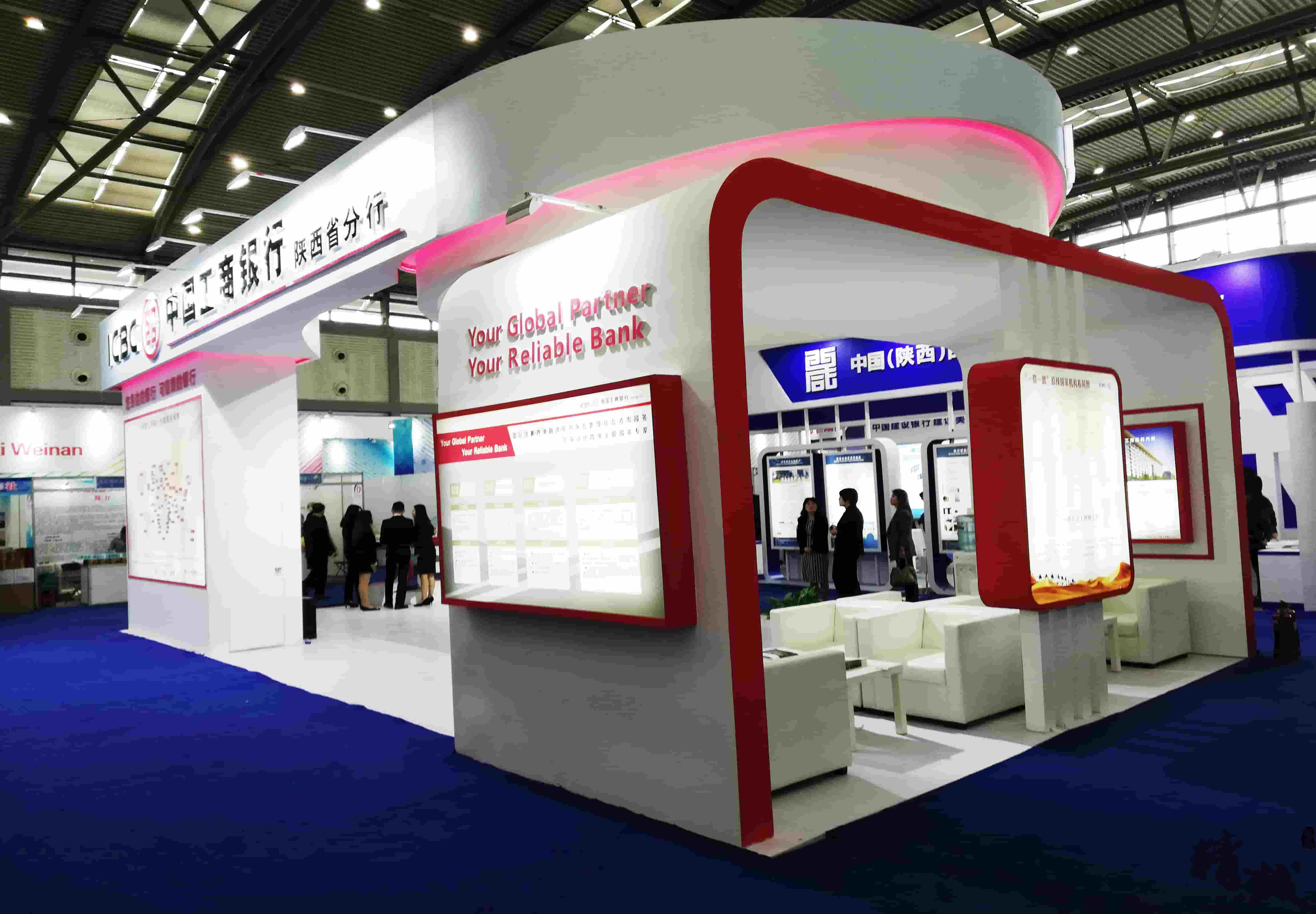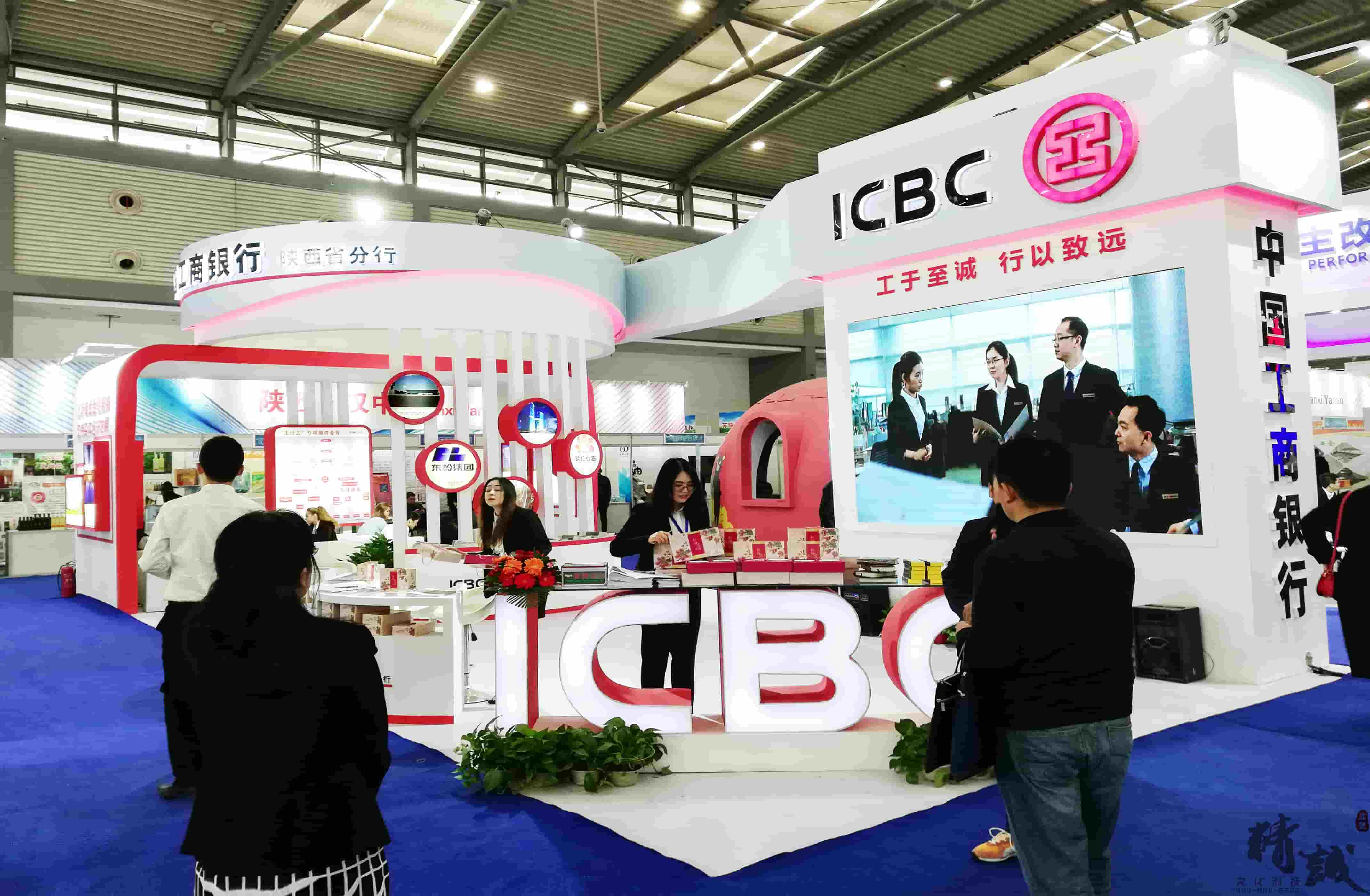 中國工商銀行展位采用開敞式的布局,能夠使參觀者在其中自由參觀;色彩上以白色為主,紅色作為點綴,運用合理的燈光進行搭配,營造出干凈、簡約的展陳氛圍。展區(qū)內(nèi)部采用聲、光、電相結(jié)合的現(xiàn)代展示手法,打造功能合理、展陳明確的展位形象。