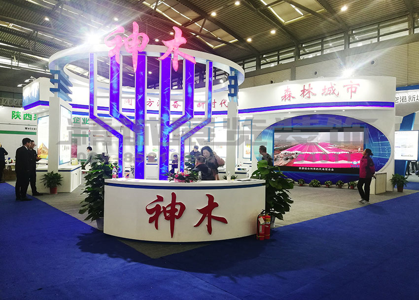 神木展位通過開敞的布局和富有創(chuàng)意的承重結(jié)構(gòu)造型,結(jié)合燈箱、LED拼接屏,使整個展位形象充滿靈動性。同時運用科技元的素點綴,突出地方產(chǎn)業(yè)在科技的驅(qū)動下,日益增長的經(jīng)濟狀態(tài)。