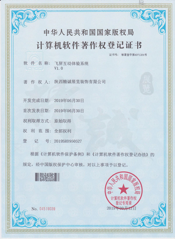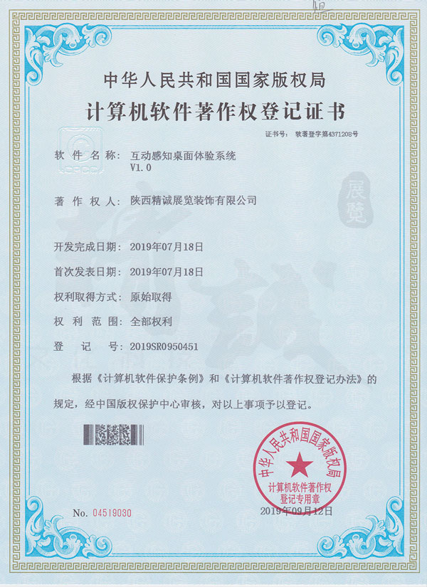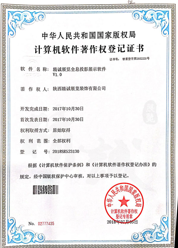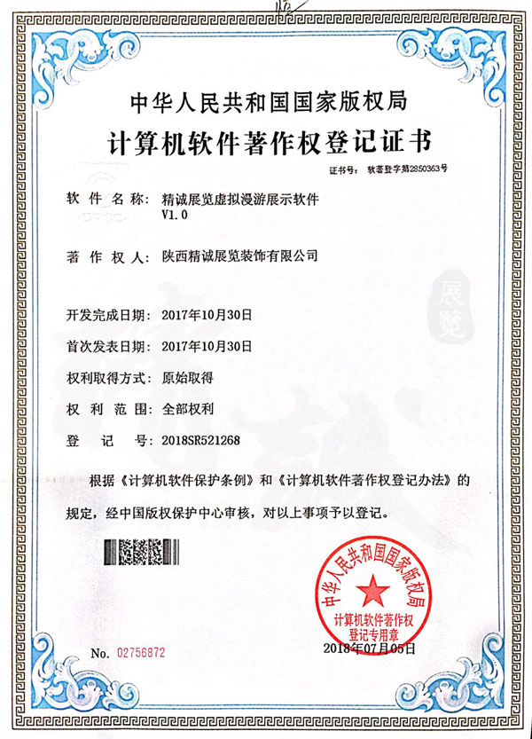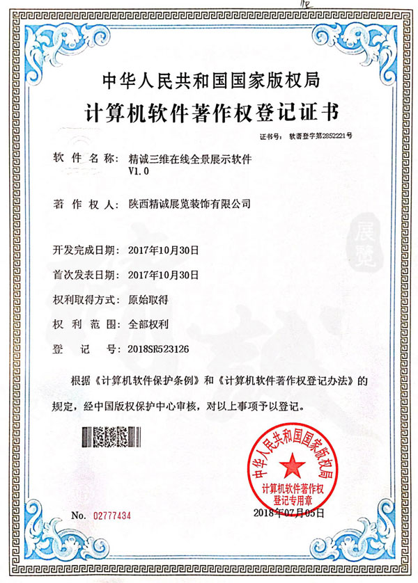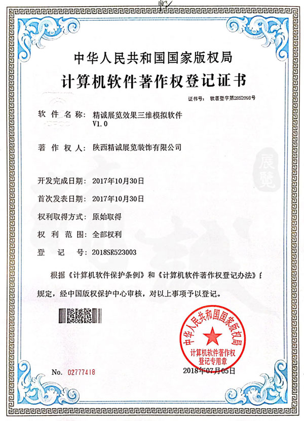- 陜西精誠展覽裝飾有限公司計算機軟件著作權登記證書 -