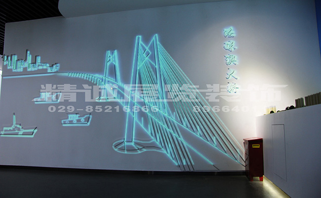 采用海綿城市升降沙盤、港珠澳大橋結(jié)構(gòu)投影體現(xiàn)城市的不斷創(chuàng)新與改變,展示在改善人居城市環(huán)境、基礎(chǔ)市政設(shè)施建設(shè)、地下空間利用等方面所做的努力。集中體現(xiàn)城市地下綜合管廊、海綿城市、四新技術(shù)、城市綜合治理等內(nèi)容。