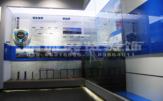 運(yùn)用圖文展墻以及實(shí)體模型,展示道路橋梁、隧道方面所取得的成就。
